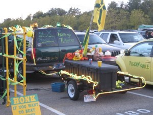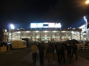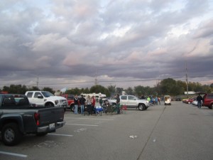 So we parked in the packed parking lot of Papa John’s Cardinal stadium only to find out that we were late. Late for the tailgating. I kid you not. People actually tailgate for a high school football game. And they do it big too. Rows and rows of grills, corn-hole and beer.