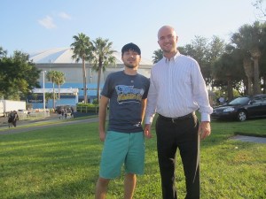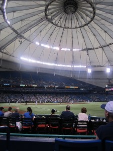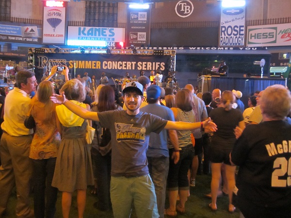My boy Rich and I decided to hit up the Rays game on Saturday and check out “Throwback Night”. Now the Rays weren’t around until the late 90’s so I guess some marketing manager decided to make up some retro designs and cash in a little profit from fans. (They sold me on it). I just wish they woulda went with Devil Ray colors instead but apparently the owners are not fans of that point in team history.