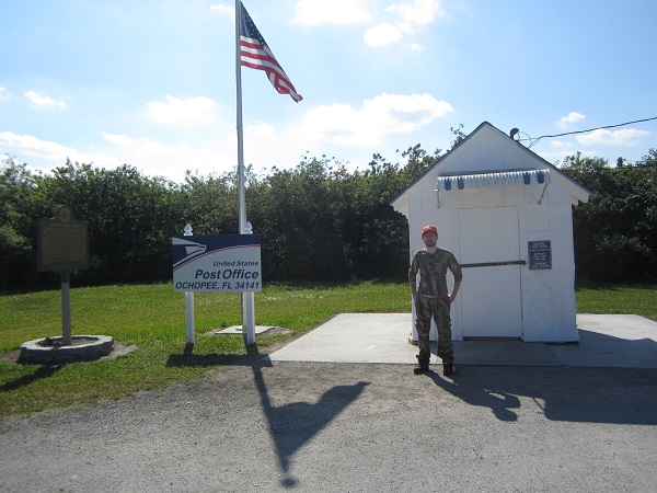 We went back to the Skunk Ape Research Headquarters and that’s when we threw our stubbornness to the side and asked the locals where to head. They suggested a path behind the Post Office had yielded the best results. The path didn’t bring us any closer to the bag limit of pythons but I did notice that Post Office was the Country’s Smallest Post Office, literally.