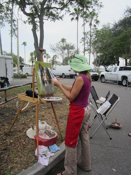 I walked down the aisle a little more and that’s where things started getting artsy. Some chick was just painting a dog on the side of the road and a street performer was practicing some sort of a Shakespearean magic.